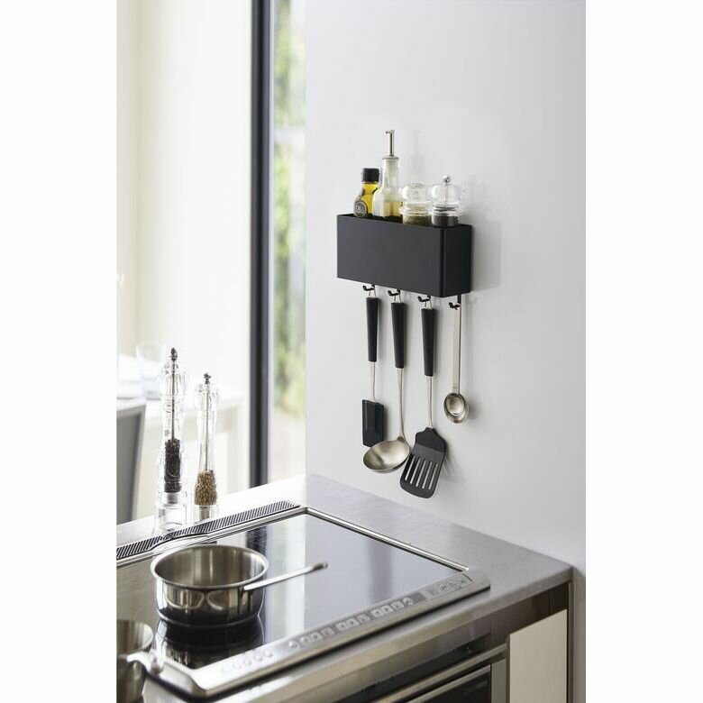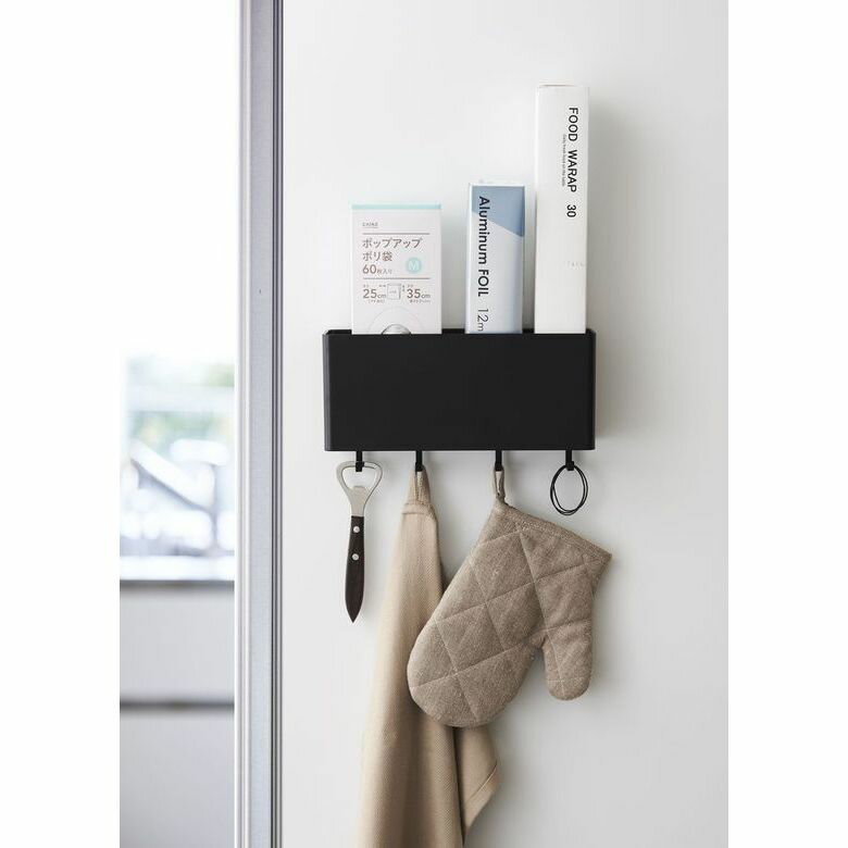 キッチン・バスルーム・ランドリー・オフィスなど、使い方はアイデア次第! サイズ:約24.5X7.2X10.5cm重さ(g):約420g 内寸サイズ(cm):約W24×D6.5×H10.2cm本体・仕切り板:ABS樹脂 マグネット 滑り止め:シリコーン付属品:フック×4 耐荷重:約3kg(本体:約2kg・フック1つあたり:約250g)耐熱:90℃ 耐冷:-40℃生産国:中国■取り付け可能な壁面 マグネットが付く平らな面・スチール壁面 ■フック取り付け時の高さ:約13cm