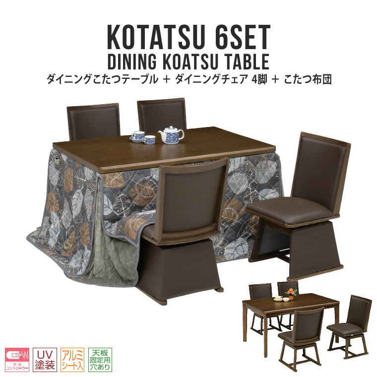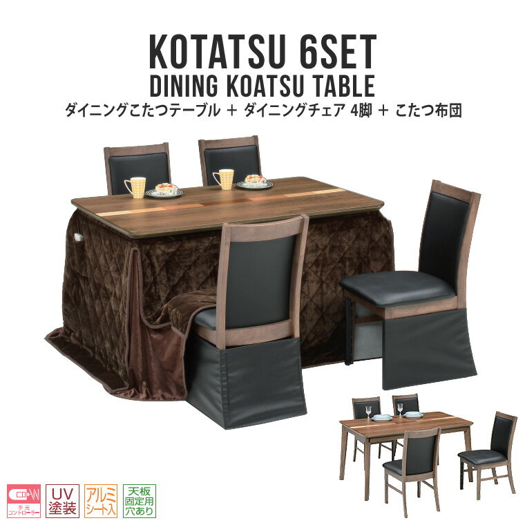 こたつ こたつセット ハイテーブル 長方形 幅135cm ダイニングテーブル ダイニングチェア ダイニングセット 暖房 こたつ布団 ダイニング6点セット 4人掛け ウォールナット おしゃれ 北欧 冬物家電 ダイニングこたつ6点セット(WN)【送料無料】