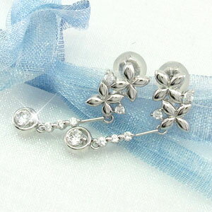花の葉から朝露がたれるイメージでお作りしたダイヤピアスです。